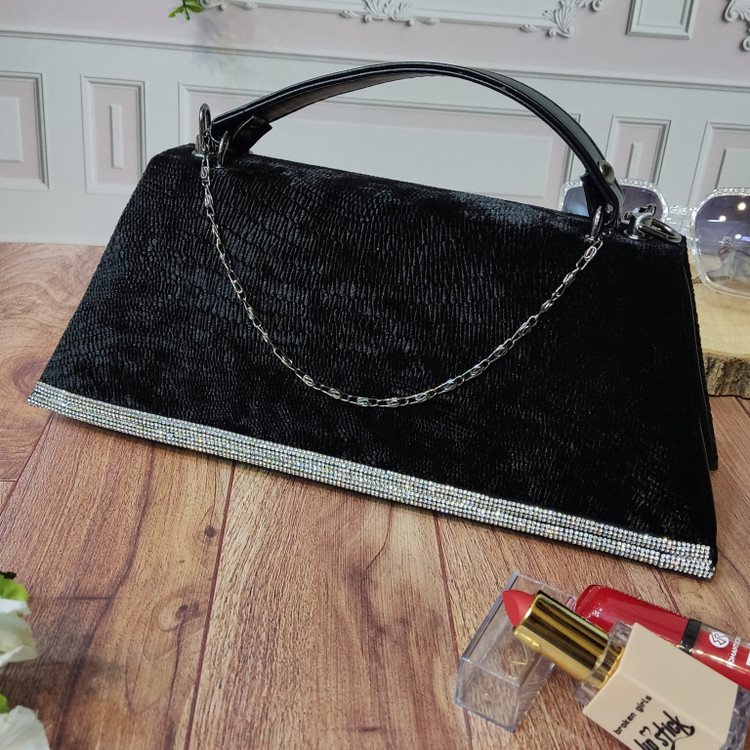 کیف مجلسی دخترانه _جنس مخمل_نگین دار_ بند کوتاه دستی_بند بلند زنجیری _دکمه مگنتی