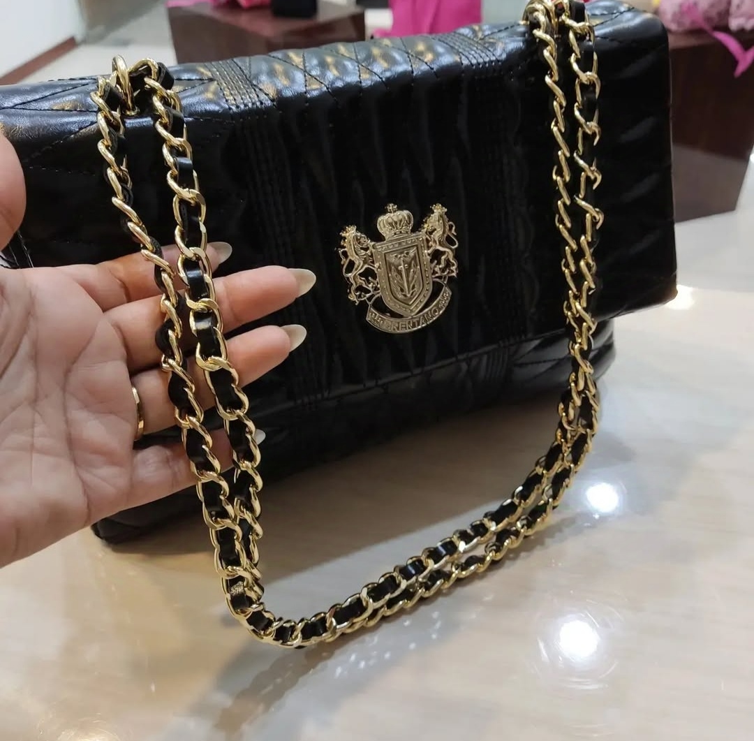 کیف زنانه چرم مصنوعی براق بند بلند ترکیبی