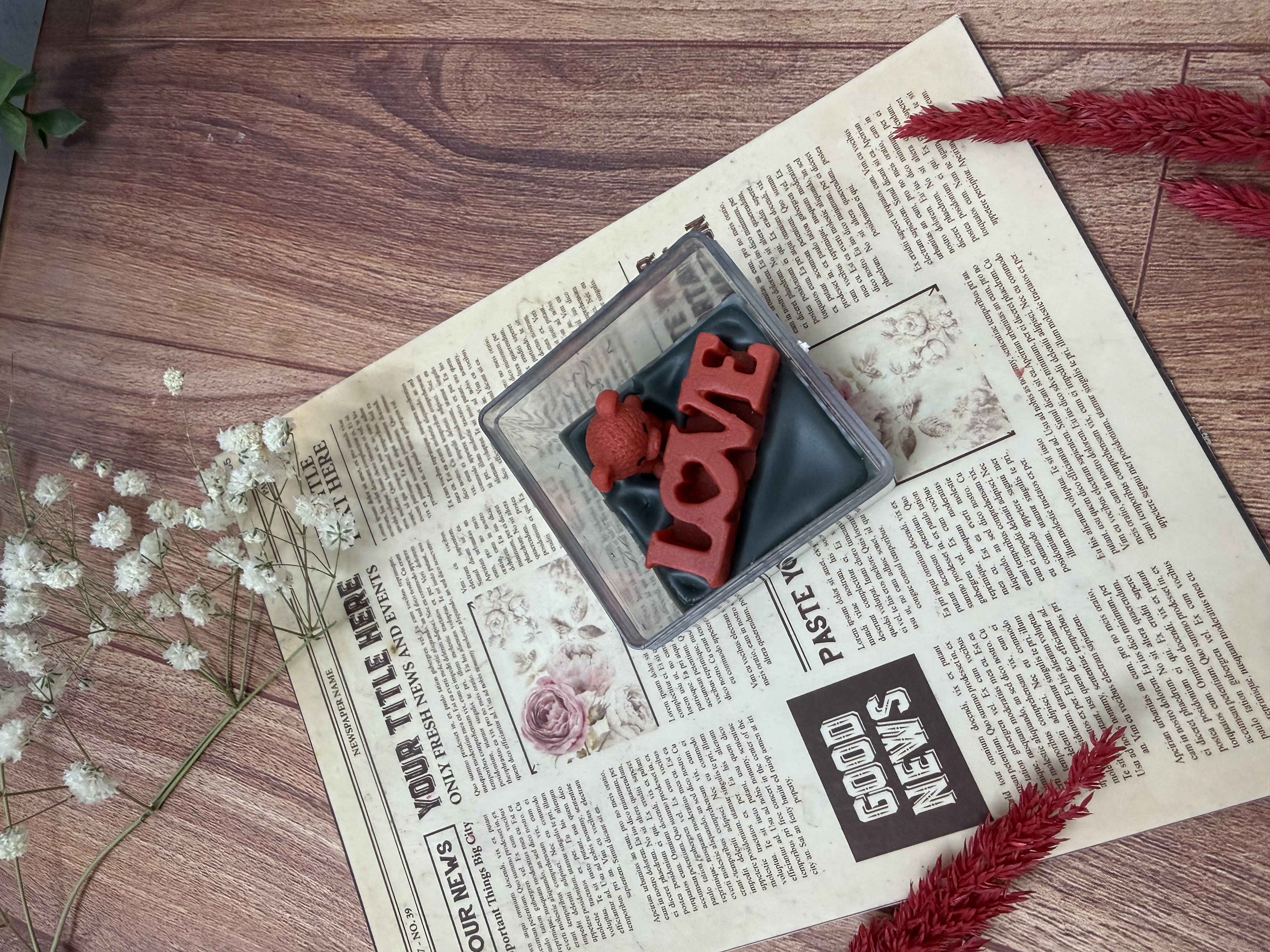 شات شیشه ای مربع با شمع لاو و خرس دو رنگ مشکی و قرمز