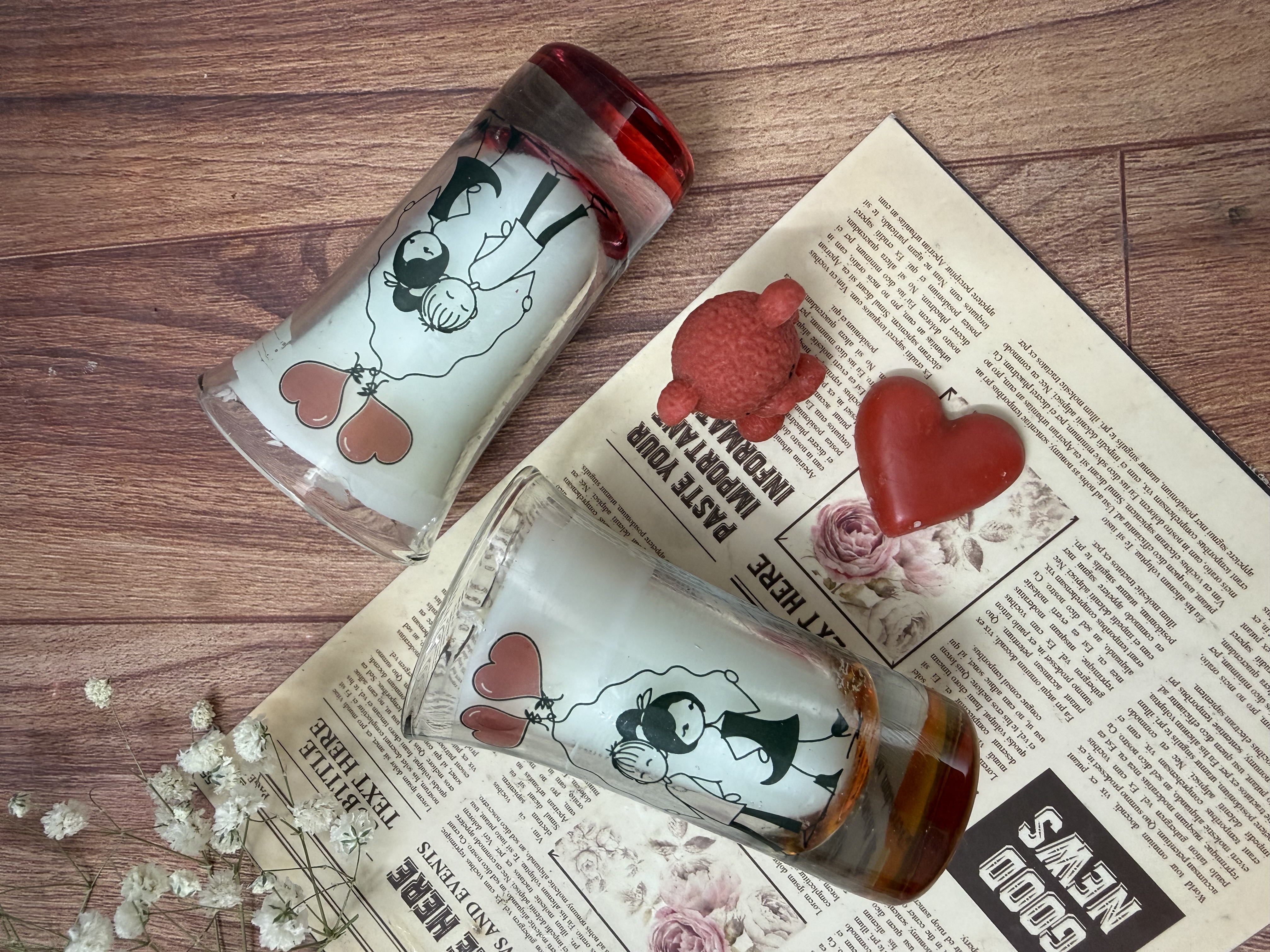 شات شیشه ای عاشقانه یه شات با ترانسفر عاشقانه با شمع ساده و سفید فقط هیمین یک جفت باقی مونده تا بتونی عشقت رو خوشحال کنی اندازه این شات زیبا ارتفاع : 8.5 قطر کف : 3.5 قطر دهانه : 5