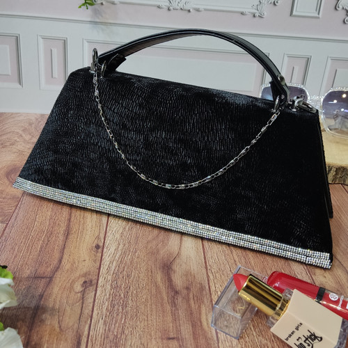 کیف دخترانه مجلسی جنس مخمل نگین دار بند دستی و دوشی زنجیری