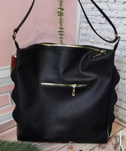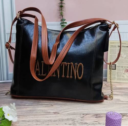 کیف زنانه بزرگ جنس چرم شرانگ رنگ مشکی بند قابل تنظیم